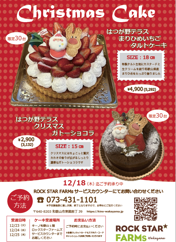 2025.11.10 Warning: Undefined variable $term_slug in /home/wakayamank45/kino-wakayama.jp/public_html/wp/wp-content/themes/uniontheme/single-event.php on line 21 【ロックスターファームズ】クリスマスケーキ販売のご案内 一覧へ