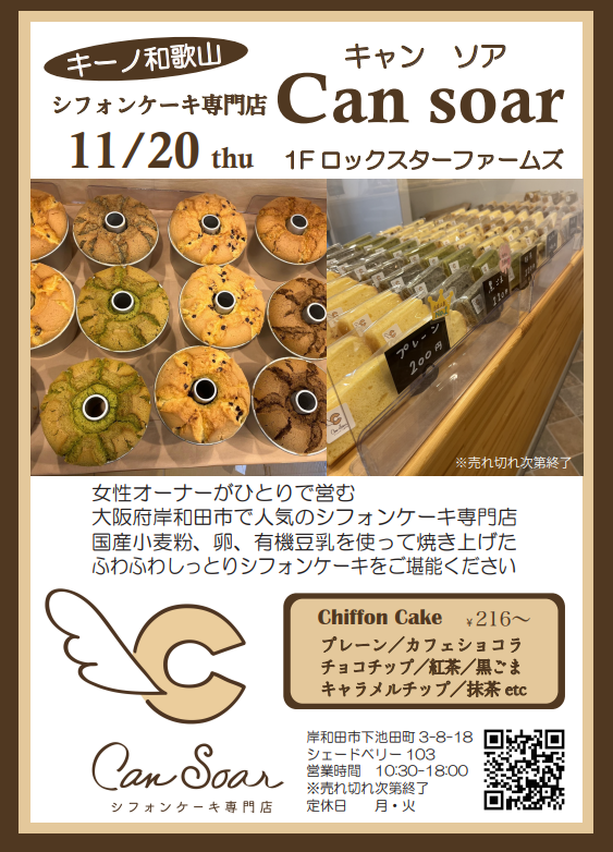 2025.11.14 Warning: Undefined variable $term_slug in /home/wakayamank45/kino-wakayama.jp/public_html/wp/wp-content/themes/uniontheme/single-event.php on line 21 【ロックスターファームズ】Can soar 販売のお知らせ 一覧へ