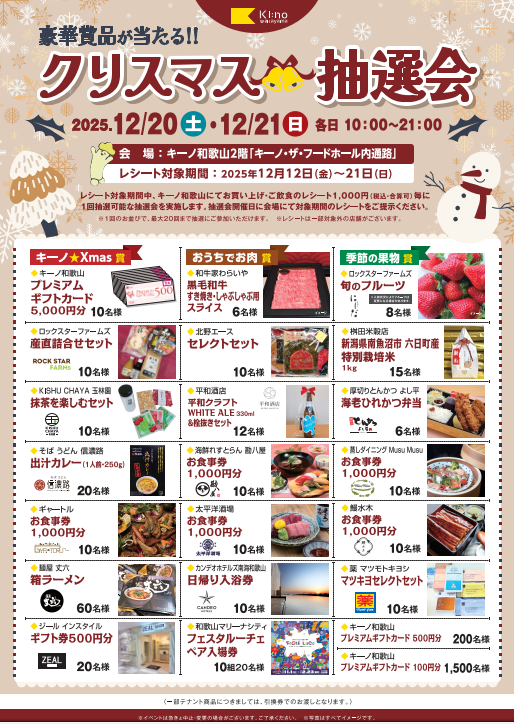 【キーノ和歌山クリスマス抽選会】開催のお知らせ🎄